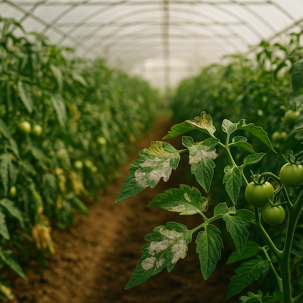 En primavera y verano, las condiciones dentro del cultivo protegido pueden volverse ideales para que aparezcan enfermedades fúngicas como mildiu, oídio, roya o moho gris (Botrytis). La combinación de temperaturas suaves o elevadas y altos niveles de humedad crea un entorno perfecto para su desarrollo.